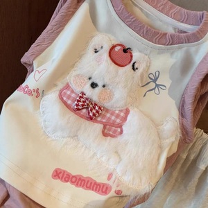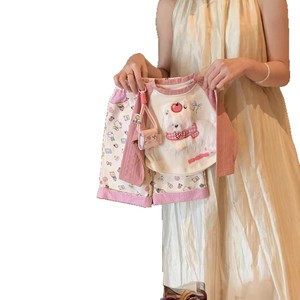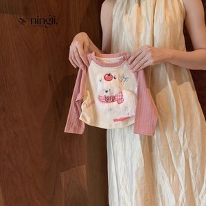 奶油女童卡通T恤套装新款秋季女孩插肩袖上衣卡通印花裤子两件套