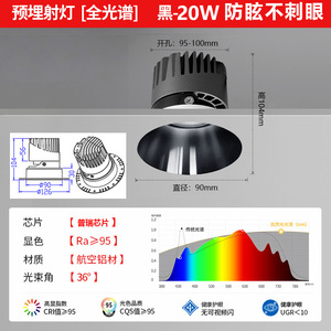 95开孔预埋款 20W-黑杯