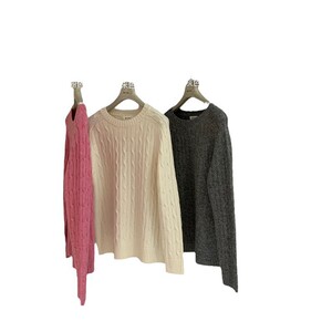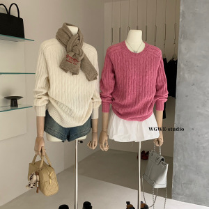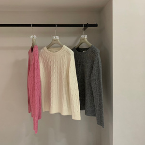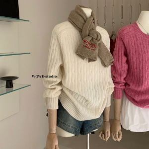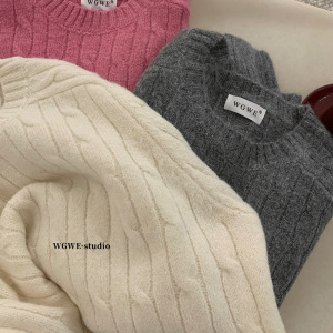 WGWE2992复古甜美麻花显白粉色套头麻花毛衣