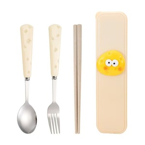 可爱奶酪餐具三件套学生儿童筷子勺子叉子不锈钢便携式餐具可收纳