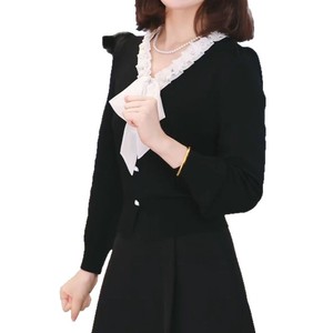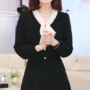 小香风气质轻奢感针织衫女早秋新款显瘦时尚撞色系带V领上衣