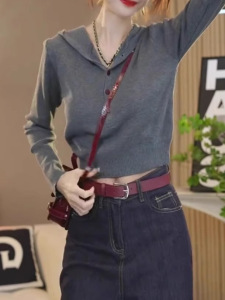 小个子针织衫女连帽短款毛衣2025新款秋季韩版宽松时尚感上衣外套