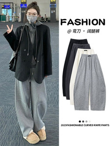 黑标弯刀运动裤子女款秋冬季2025新款高腰大码小个子阔腿加绒卫裤