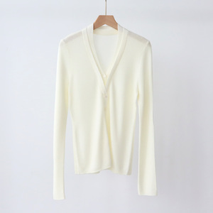 早秋氛围感穿搭羊毛混纺针织衫开衫设计感双层领假两件秋季上衣女
