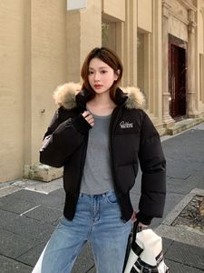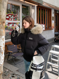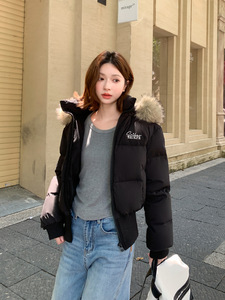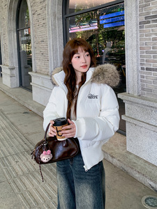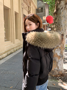 2025冬短款大毛领羽绒服女美式复古收腰显瘦高级感个性白鸭绒外套