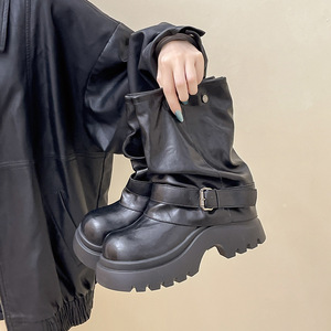 英伦风时尚百搭马丁靴女2025秋冬新款美拉德厚底增高堆堆靴时装靴