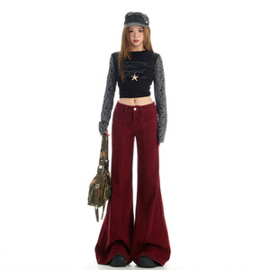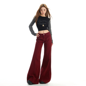 2025秋冬新款安可拉红微喇牛仔裤女低腰不贴腿显瘦百搭辣妹喇叭裤