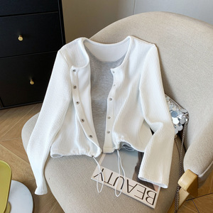 假两件套2025秋装新款女装休闲百搭抽绳开衫慵懒风长袖上衣A6360