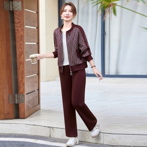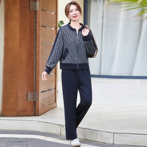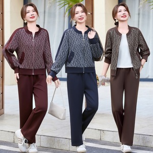 妈妈秋装运动套装女时尚中老年春秋季休闲外套2025新款大码两件套