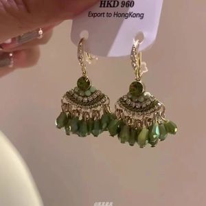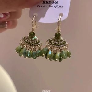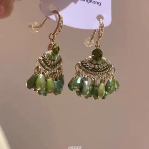 新中式绿色水滴流苏耳环民族风小众高级轻奢波西米亚重工度假耳饰