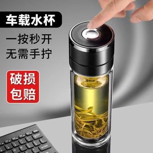 新款茶水分离杯男士车载速开杯一键开盖双层玻璃杯便携按压式水杯