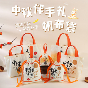 新款中秋节伴手礼手提袋月饼礼物包装袋单肩购物袋帆布节日礼品袋
