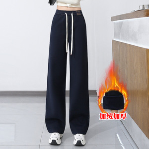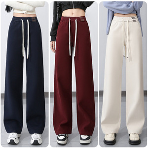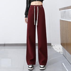安可拉红直筒牛仔裤女2025秋季松紧腰抽绳时尚宽松显瘦窄版阔腿裤