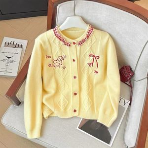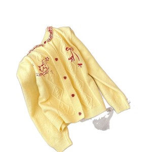 温柔风短款圆领刺绣针织开衫毛衣外套女秋冬新款甜美上衣外搭上衣