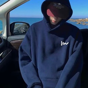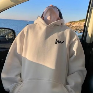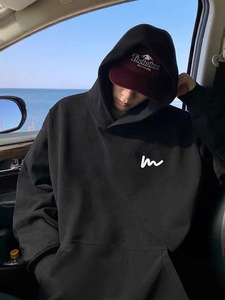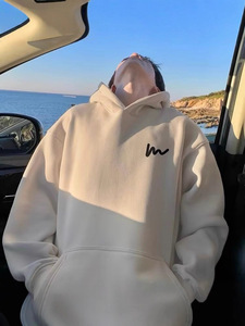 美式连帽卫衣男秋冬季新款加绒加厚宽松潮牌休闲情侣保暖重磅外套