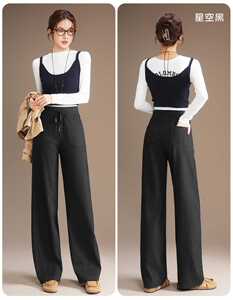 五只白鹅2591星空牛仔阔腿裤秋冬新款针织提花休闲时尚阔腿裤女