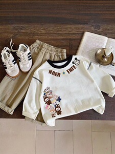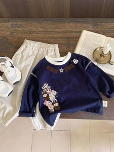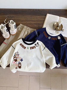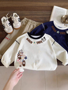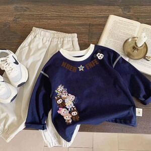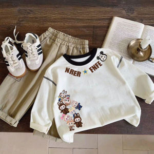 NASA儿童拉布布labubu卡通拼接T恤男女童装百搭洋气时尚长袖上衣