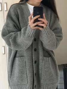 灰色中长款毛衣外套女春秋外搭外穿慵懒复古奶系穿搭秋冬针织开衫