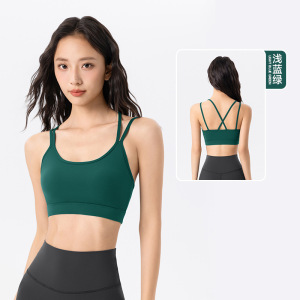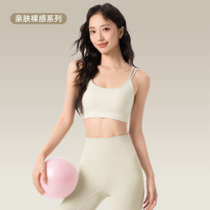 交叉美背运动内衣女跑步带胸垫裸感减震文胸收副乳瑜伽普拉提背心