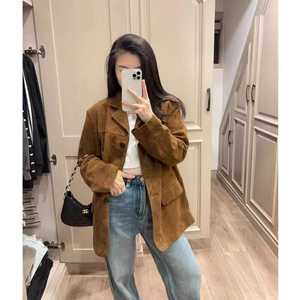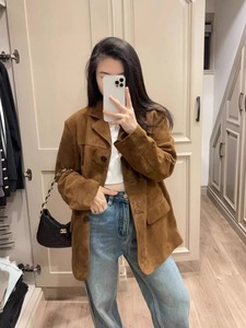 美拉德复古棕色皮衣外套女秋季2025新款感宽松麂皮绒西装上衣