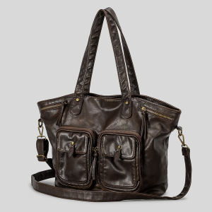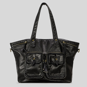 复古大容量托特包多口袋机车女士单肩包水洗软皮手提斜挎包2025新