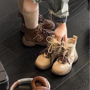 儿童高帮德迅鞋女童2025新款秋季百搭休闲运动厚底马丁靴