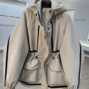 欧货高端织带拼接撞色外套女2025新款休闲宽松显瘦短款风衣