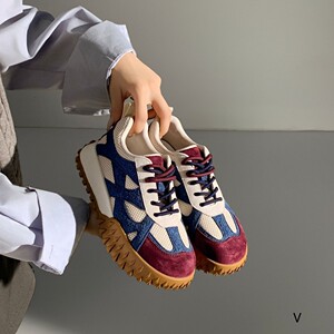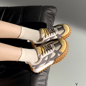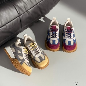 欧洲站女鞋25秋时尚撞色猪巴牛纤绒圆头双色系带平底款德训鞋单鞋