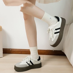 厚底增高小白鞋春秋新款女鞋舒适时尚低帮休闲复古板鞋百搭德训鞋