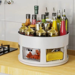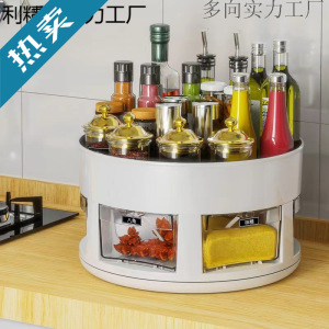 厨房置物架台面可旋转多层便捷免安装多功能收纳盒双层旋转调料架