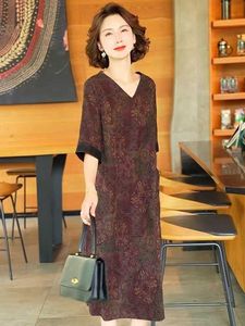 2025夏季新款新中式国风印花V领连衣裙女时尚宽松休闲妈妈装裙子