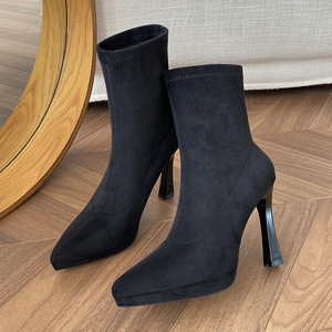 欧洲站防水台刚时装靴中筒靴2025秋冬新款侧拉链T台秀弹力靴女靴
