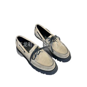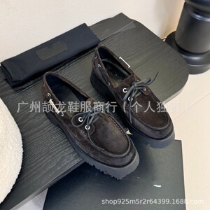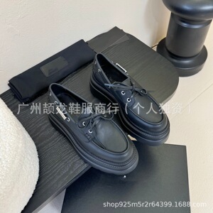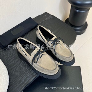 高端2025新款圆头复古做旧浅口厚底增高系带百搭时尚乐福鞋单鞋女