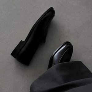 一脚蹬乐福鞋男款厚底增高商务正装黑色复古休闲通勤小众德比皮鞋