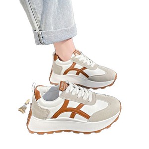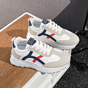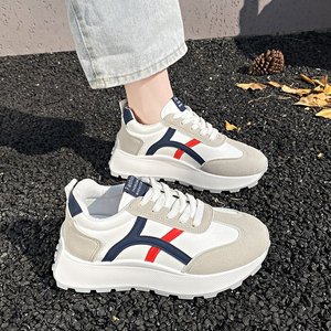 厚底内增高老爹鞋女小个子2025新款休闲运动皮面德训鞋时尚旅游鞋