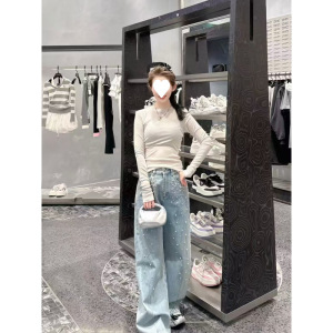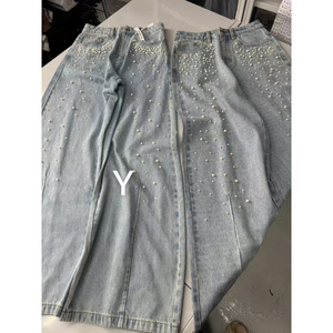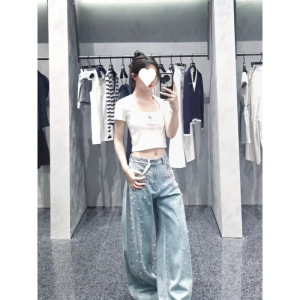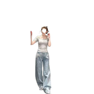 深圳南油高货ANN高腰阔腿牛仔裤女重工烫珠坠感25新款夏显瘦拖地