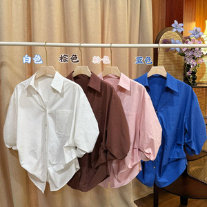 会凹造型的白衬衫秋季新款休闲百搭白色休闲翻领泡泡袖收腰衬衣女