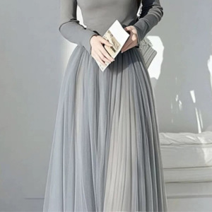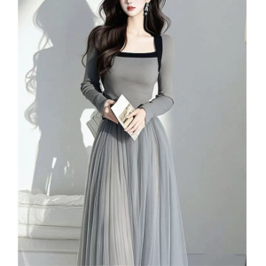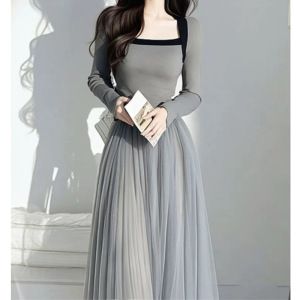 法式高端2025秋季时尚设计精致气质高级感网纱内搭灰色连衣裙女
