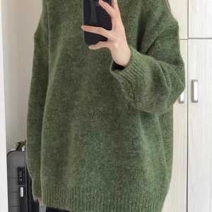 2025秋冬新款复古绿色软糯内搭外穿设计感宽松慵懒保暖厚针织毛衣
