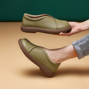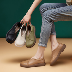 2025时尚新款一脚蹬休闲鞋女平底防滑舒适乐福鞋女百搭复古妈妈鞋