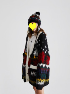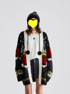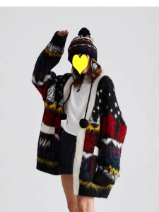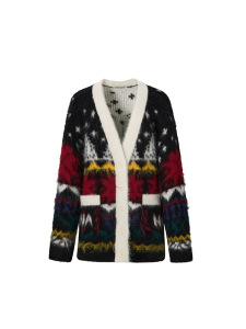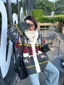 费尔岛重工提花拉毛开衫毛衣女2025秋冬新款宽松中长款针织外套厚