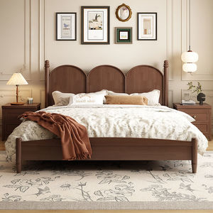复古美式实木床双人床1.5米1.8米现代简约中古风公寓出租屋民宿床