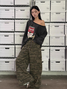 ME KAKAMEE十三行秋美式复古迷彩工装直筒牛仔裤女(配腰带) C0516