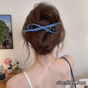 7052牛仔领结扭扭夹-浅蓝