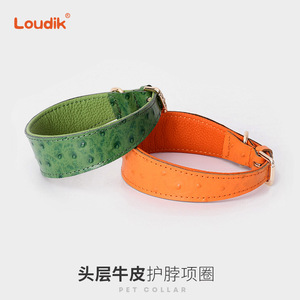 Dego工厂批发现货真皮宠物狗狗项圈护脖狗带牵引绳中大型犬跨境