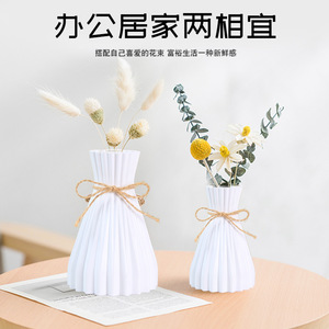 小清新防摔麻绳花瓶不可承水塑料折叠纹装饰摆件仿真桌面摆件花瓶