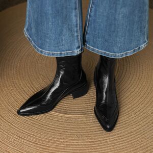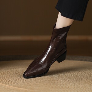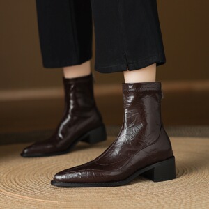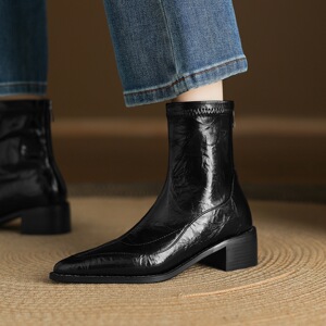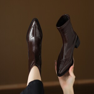 33—43大码靴复古尖头粗跟短靴女秋冬新款瘦瘦靴时装靴中跟外贸鞋
