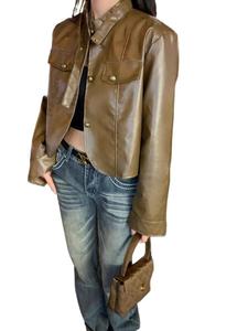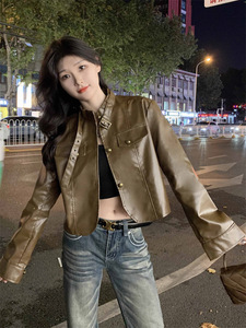 复古港风PU皮衣外套女秋季高街辣妹百搭休闲短款机车服夹克上衣潮