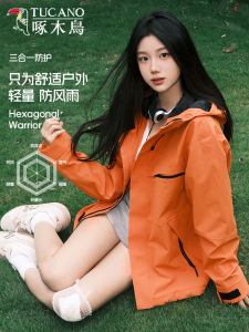 啄木鸟冲锋衣男女款秋户外三合一防风防水情侣登山服连帽夹克外套
