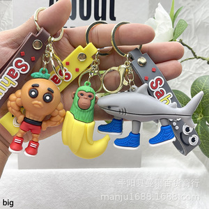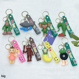 国外山海经挂件钥匙扣公仔盲盒木棍人耐克鲨鱼钥匙扣挂件软胶山海
